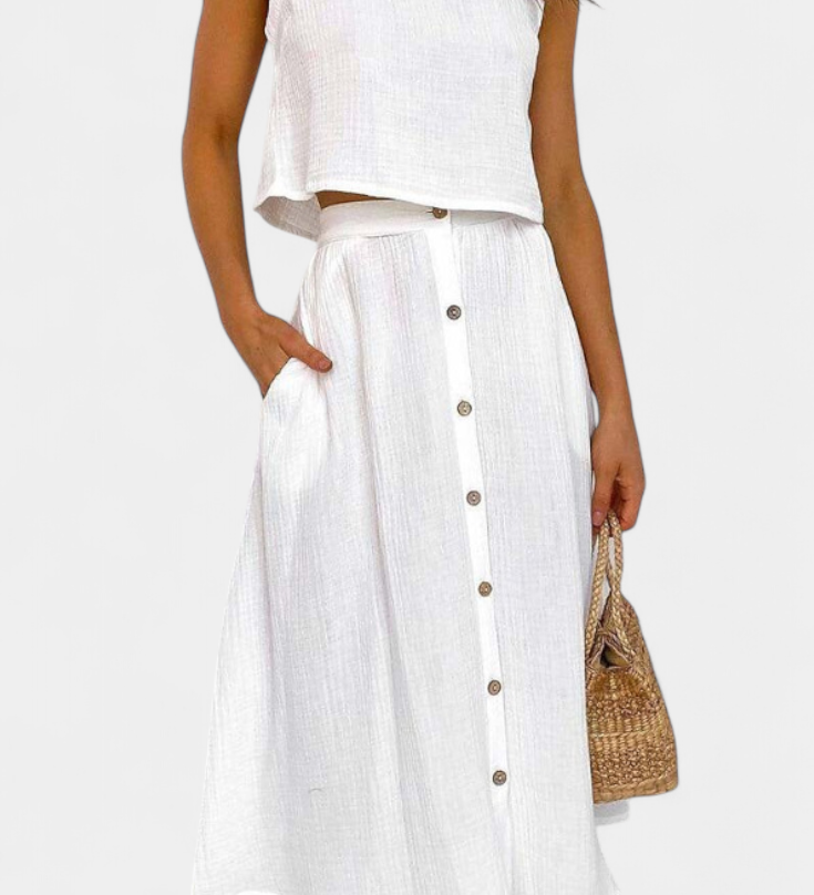 Conjunto Oriana sin Espalda con Falda Abotonada en Color Sólido para un Estilo Elegante