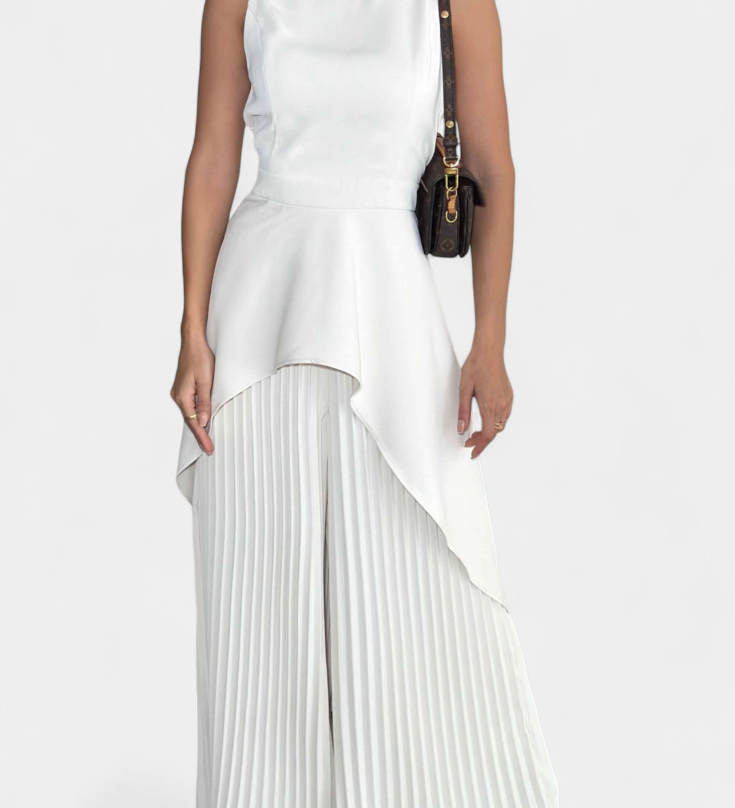 Chrysoula Elegante Conjunto Asimétrico con Pantalón Plisado para un Estilo Sofisticado