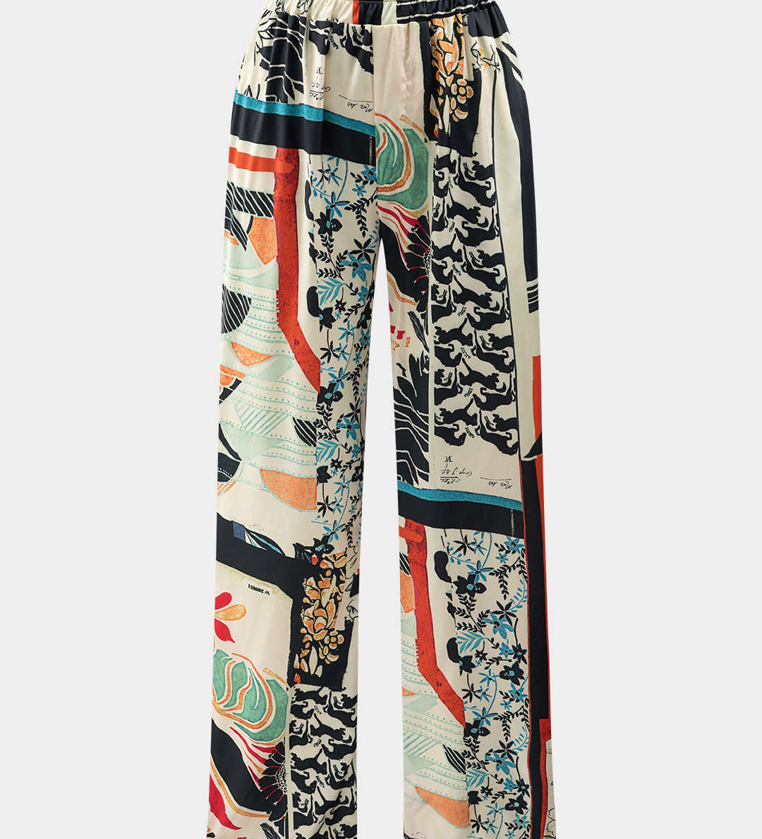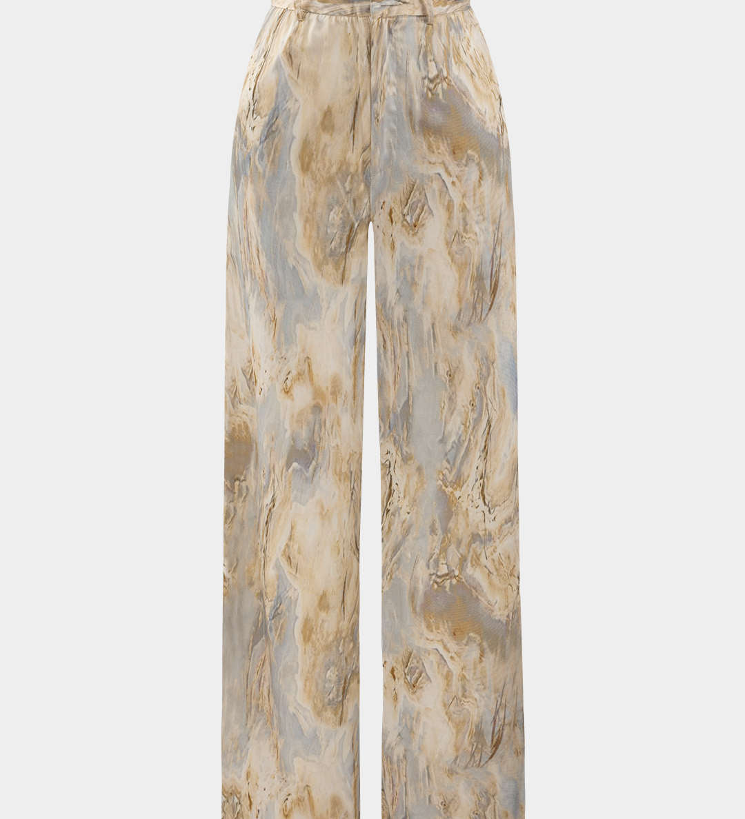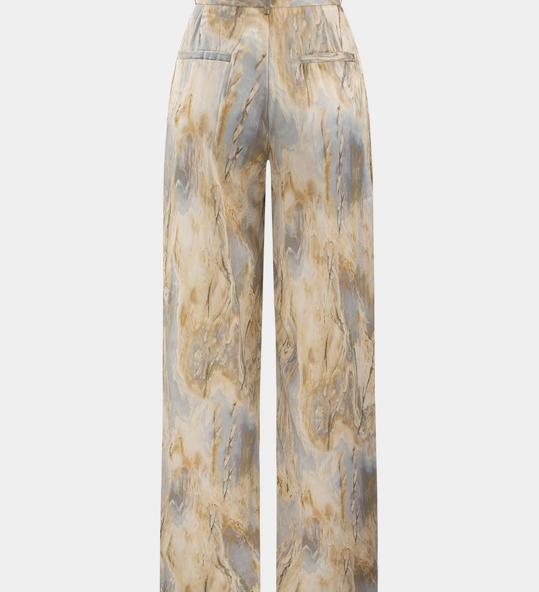Inna Pantalones Rectos de Cintura Alta con Elegante Estampado de Mármol