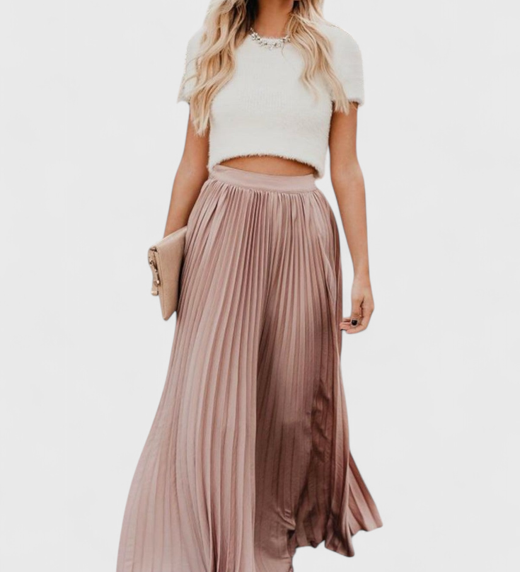Elegante Falda Larga Plisada de Talle Alto para un Estilo Sofisticado
