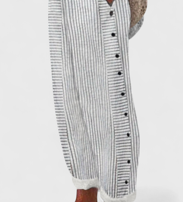 Alba Pantalones de Mezcla de Lino a Rayas para un Estilo Fresco y Elegante