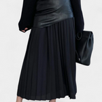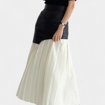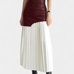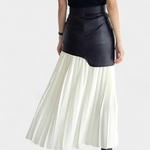 Audaz y sofisticada, la falda Noelle mezcla texturas con maestría para un look contemporáneo y refinado. Con un diseño patchwork en chifón y cuero sintético, su silueta plisada y corte asimétrico aportan movimiento y personalidad a cada paso. Ideal para quienes buscan destacar con estilo y estructura.