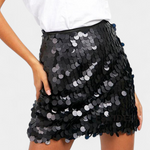 Elegante Mini Falda de Lentejuelas Veena en Negro, Dorado o Plata
