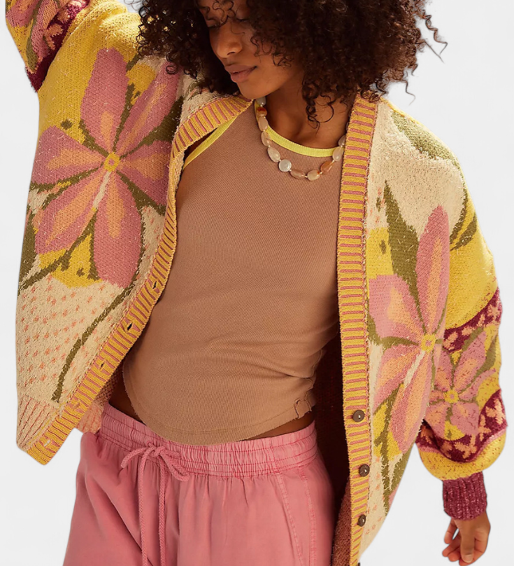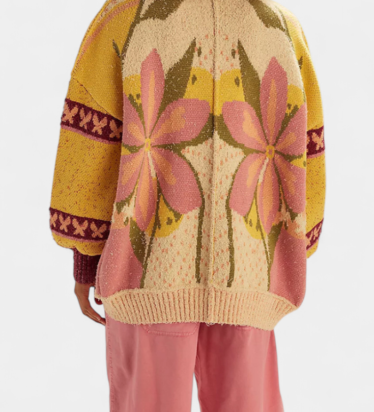 Casualidad Elegante: Cárdigan de Punto con Patrón Floral y Toque Relax