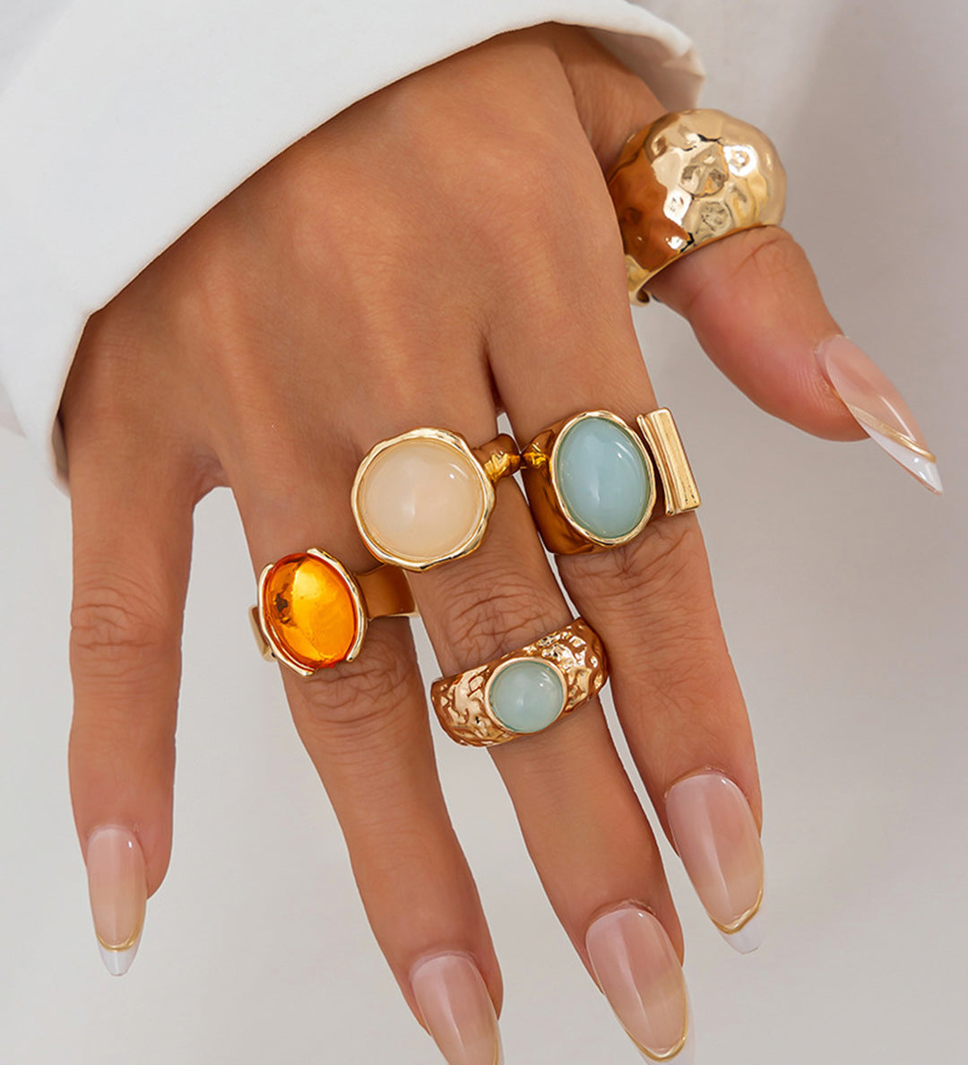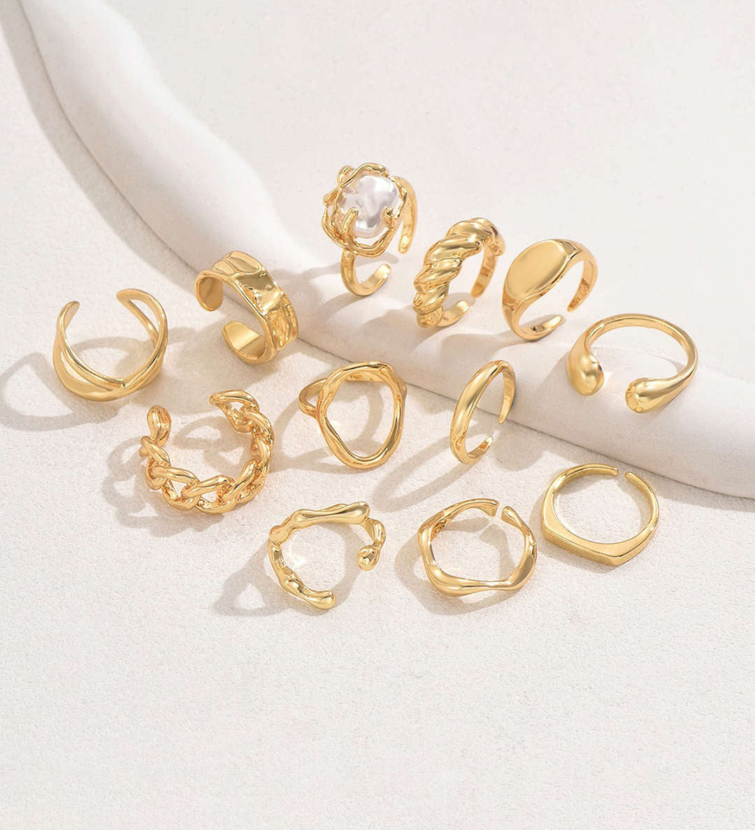 Elegante conjunto de anillos abiertos con brillante detalle de Strass