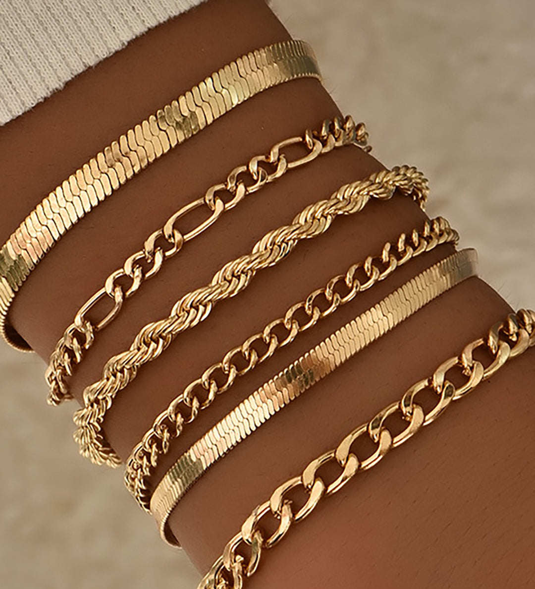 Elegante Conjunto de 6 Pulseras de Cadena Cubana para un Estilo Moderno y Sofisticado