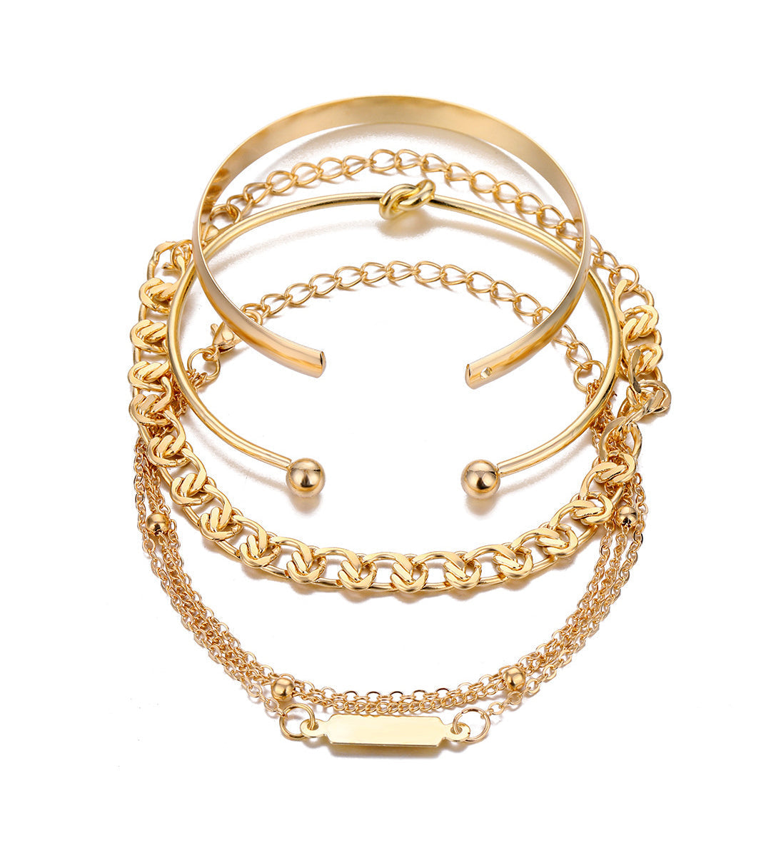 Set de 4 Pulseras de Cadena de Metal, Estilo Moderno y Duradero