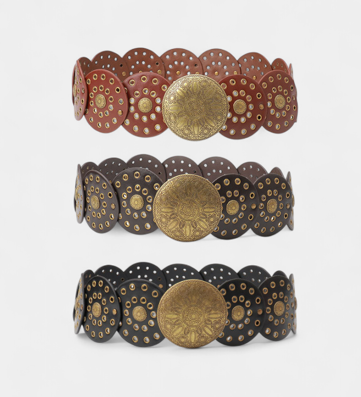 Alicia Cinturón Cowboy Vintage con Hebilla Circular Decorativa para un Estilo Único