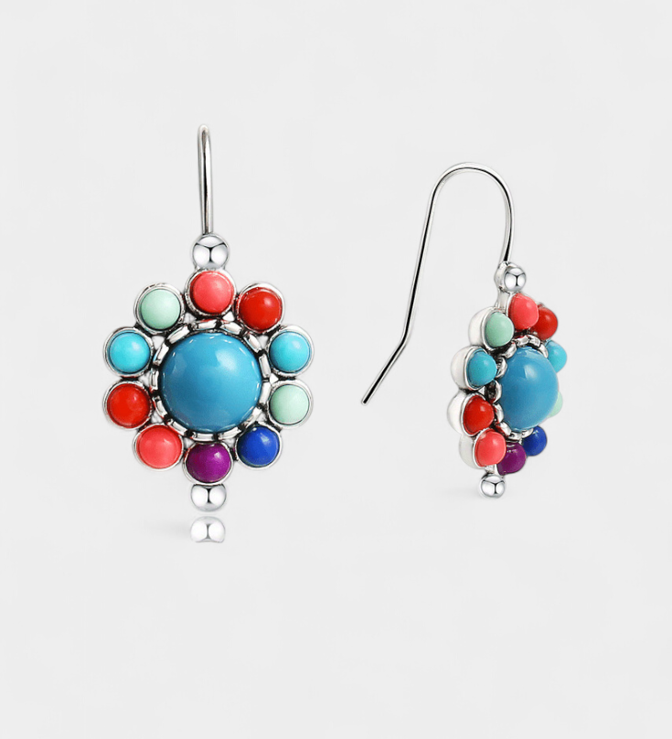 Pendientes Redondos Multicolor con Encantadora Turquesa