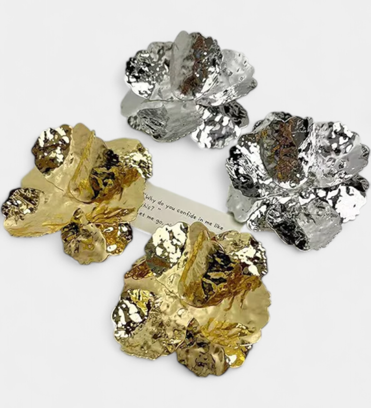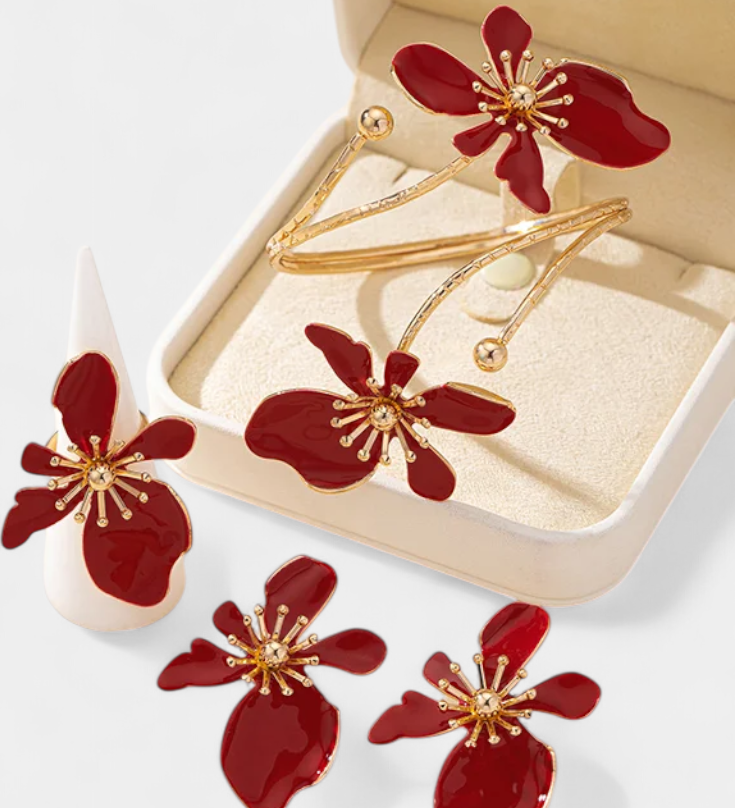 Elegante set de accesorios florales con pulsera, pendientes y anillos para destacar tu estilo