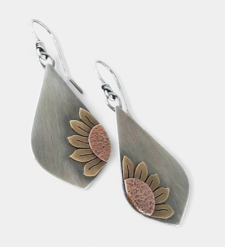 Boucles d'Oreilles Pendantes à Coiffe de Tournesol Boho