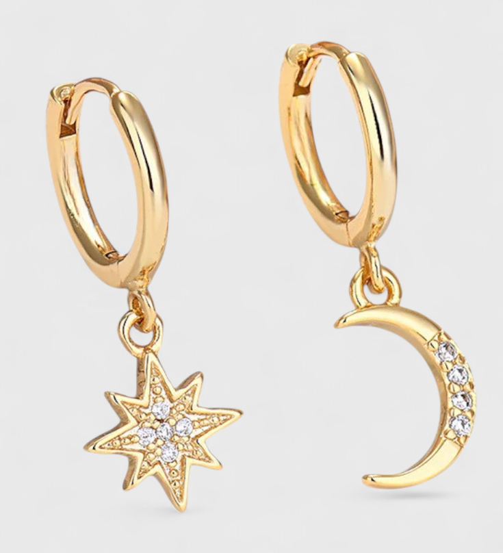 Elegantes Pendientes Celestiales con Estrella y Luna para un Toque Mágico