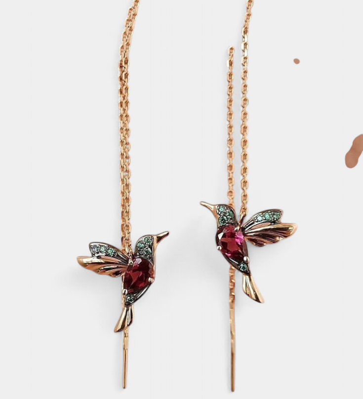 Оригинальные серёжки с разноцветными циркониями в виде птиц