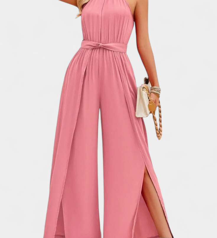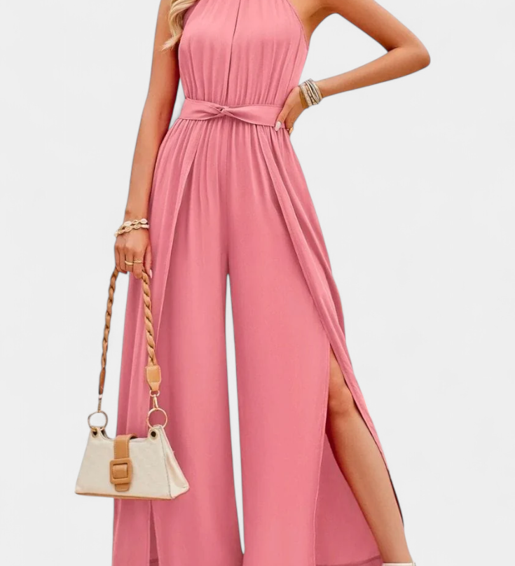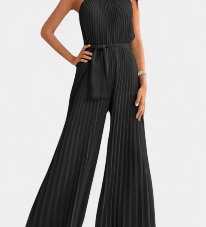 Elegante Patrizia Mono Palazzo Plisado con Cuello Halter para un estilo sofisticado