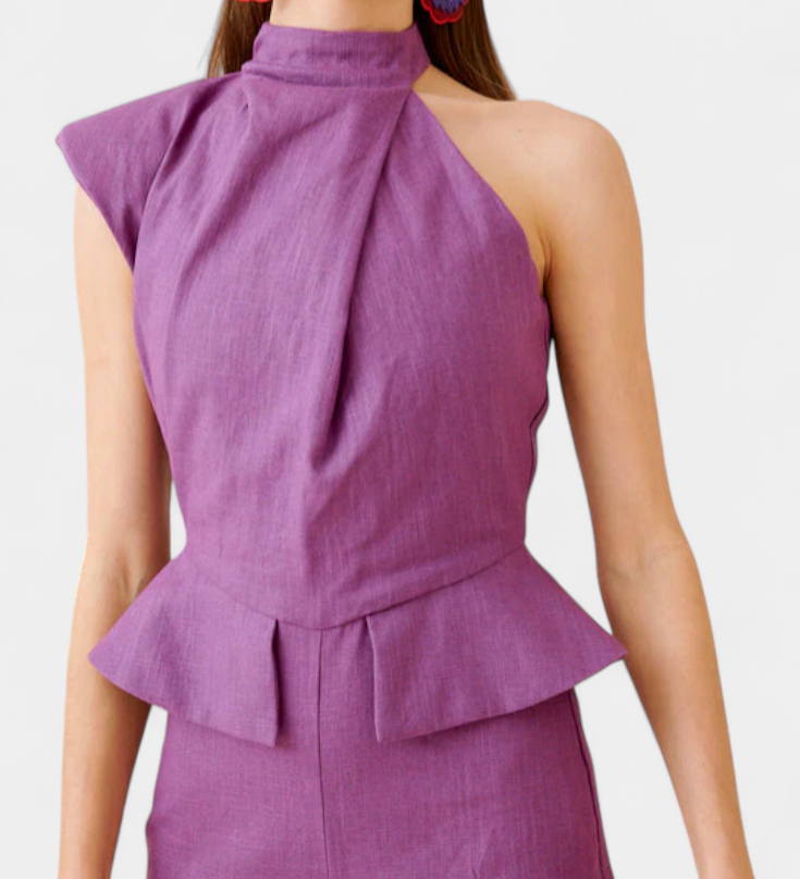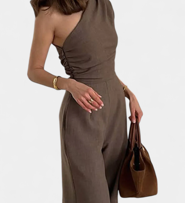 Elegante Glamour en Mono de Un Hombro con Detalles Fruncidos
