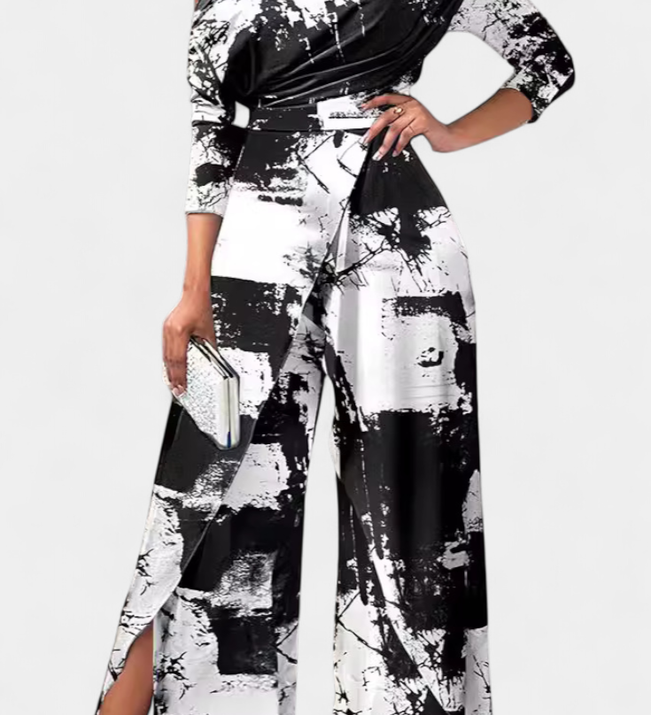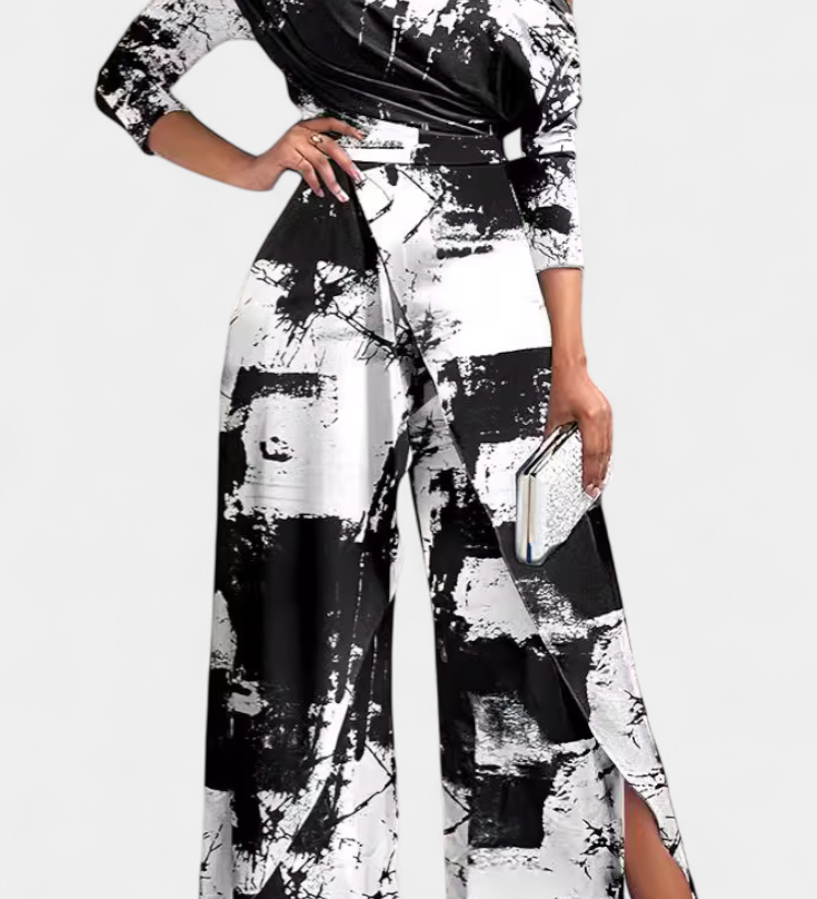 Vestido Brina Mono Largo Tie Dye con Hombros Descubiertos y Pierna Ancha con Abertura para un Estilo Moderno y Comodo