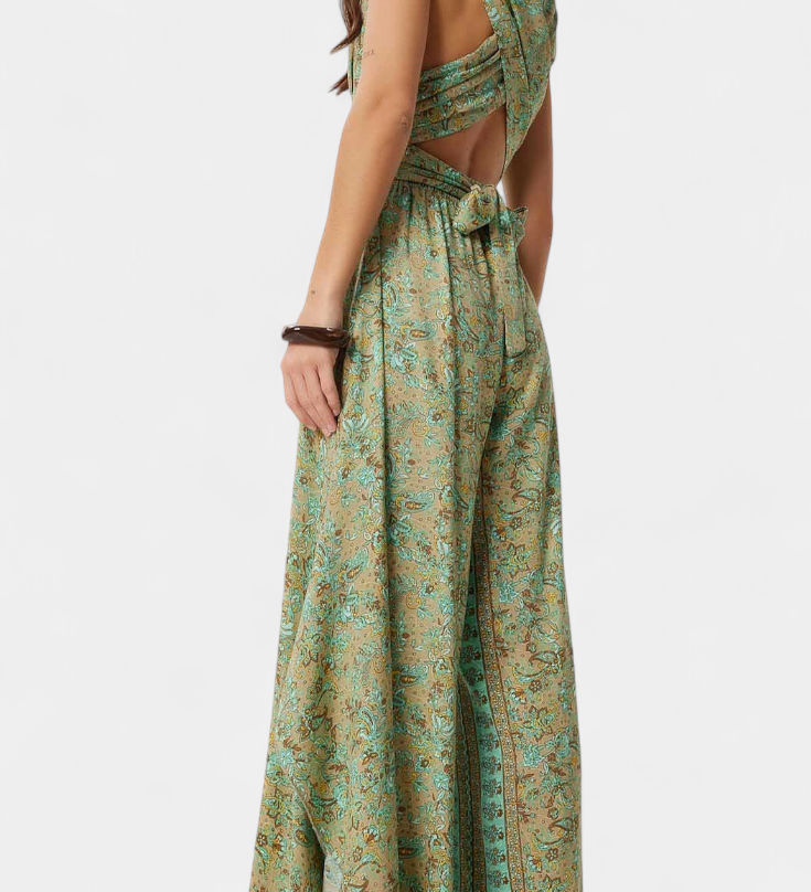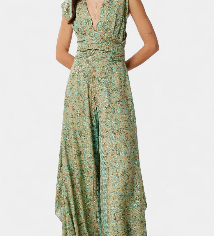 Leandra Mono Fluido Cruzado con Estampado Floral en Verde - Elegancia y Estilo Natural