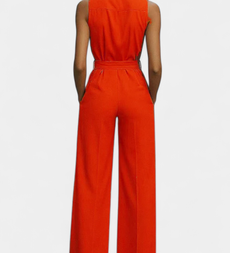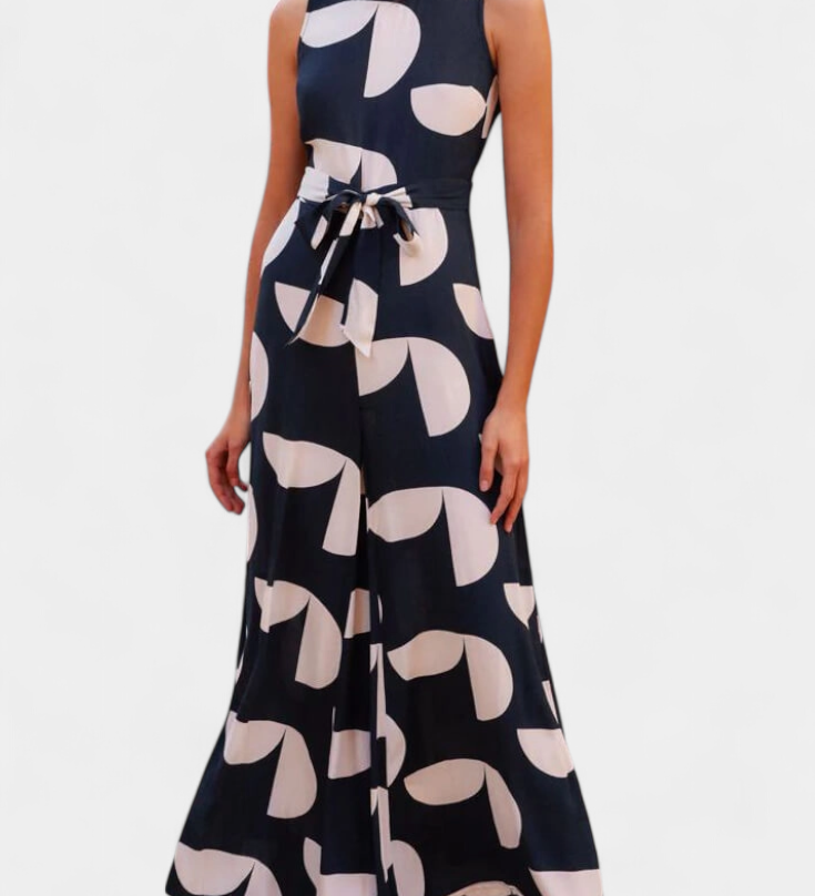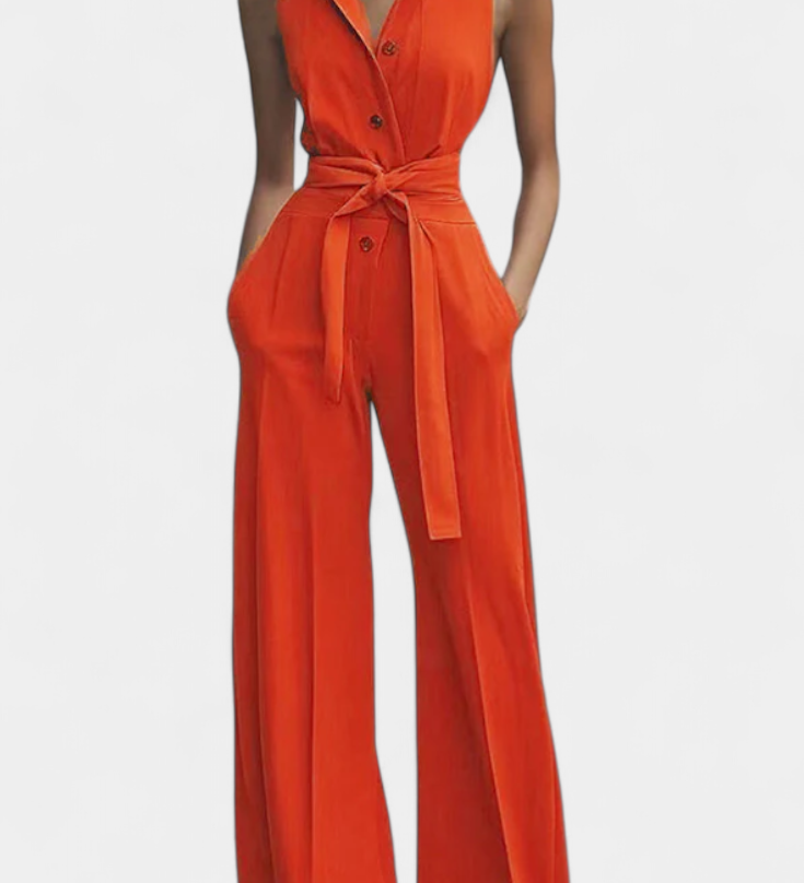 Ariella Mono Casual de Pierna Ancha con Solapa y Cintura Alta para un Estilo Elegante y Cómodo