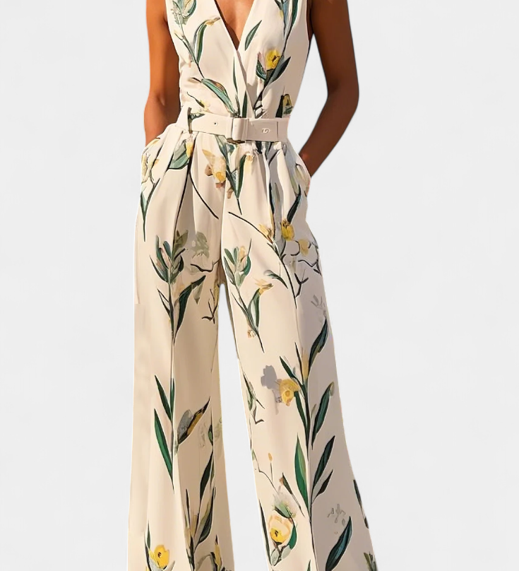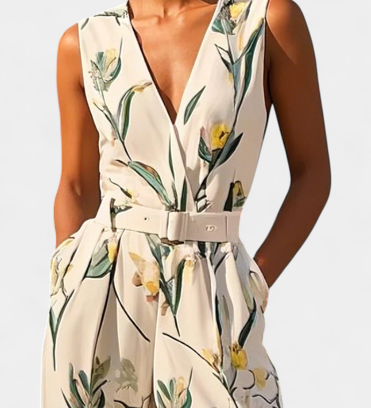 Vestido Largo de Vacaciones Slara Mono con Escote en V y Cinturón Ajustable