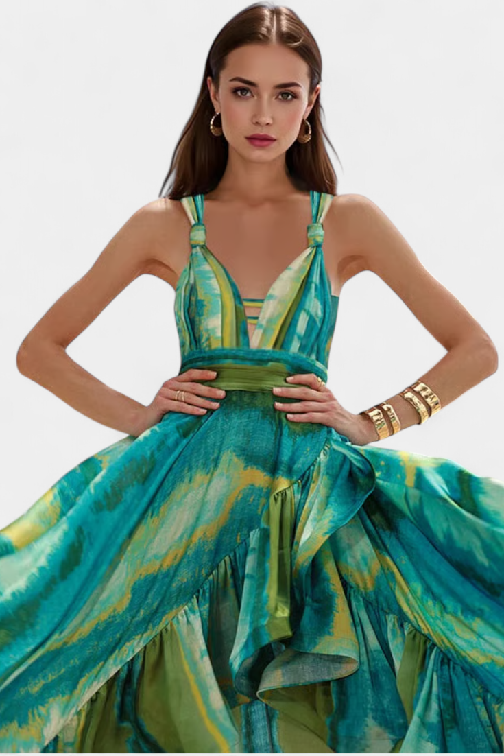 Refleja tu estilo con confianza en la playa o la piscina con el conjunto Ahria. Este set combina un bañador entero con escote en V y un vestido cubresol a juego, ideal para lucir elegante sin esfuerzo en los días de sol.
