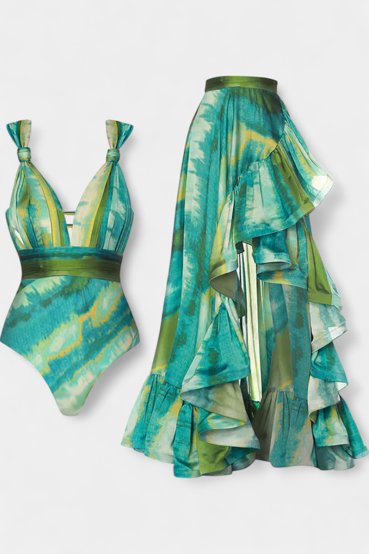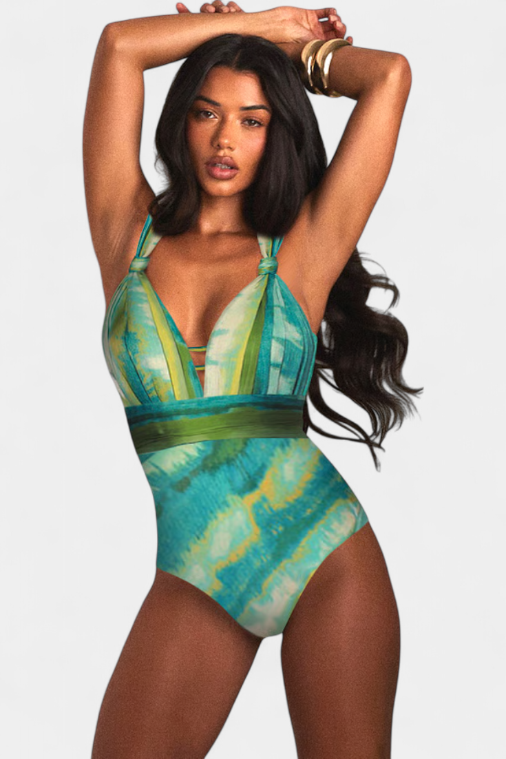 Ahria Bañador Entero Estampado con Escote en V y Cubresol - Estilo y Confort en un Solo Pieza