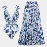 Crea olas con este atrevido conjunto de traje de baño floral que presenta una pieza única favorecedora y una falda a juego ligera. Diseñado para combinar un estilo seguro con comodidad sin esfuerzo, es tu opción ideal para momentos destacados de verano.
