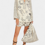 Estilo bohemio con espíritu libre. El conjunto Amalia fusiona una camisa holgada con estampado de inspiración marina y unos pantalones cortos con cintura elástica, creando un look veraniego relajado y con personalidad. Ideal para quienes buscan comodidad sin perder autenticidad visual.