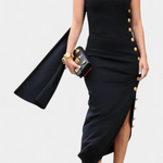 Vestido Asimétrico de Aphrodite con Elegantes Botones Dorados Decorativos