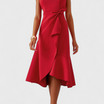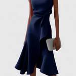 Claudia Vestido Midi Asimétrico con Drapeado - Elegancia y Estilo Cómodos