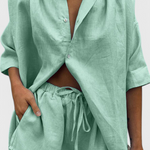 Conjunto Estilo Chic de Dos Piezas: Camisa de Botones y Pantalones Cortos con Cuerda para un Look Único