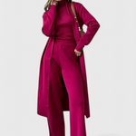 Donde la elegancia atemporal se encuentra con la comodidad diaria. El conjunto de 3 piezas Mahalia presenta un cárdigan largo, un cuello de tortuga sin mangas y pantalones de pierna ancha, todos elaborados con un tejido de punto ultra suave y transpirable. Ya sea que estés relajándote en casa, yendo a un brunch o saliendo por la noche, este conjunto ofrece una sofisticación sin esfuerzo con la comodidad que te encantará.