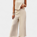 Espíritu libre con un aire natural y relajado. El conjunto Lavinia combina un top de tirantes con shorts de cintura elástica, confeccionado en una mezcla de lino y algodón que aporta frescura y textura bohemia. Diseñado para los días de descanso bajo el sol, este look desenfadado y chic es tu aliado perfecto para momentos de desconexión con estilo.