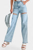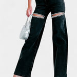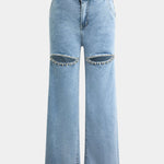 Jeans Evian Ripped Straight-Leg con Elegantes Rhinestones