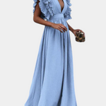 Lucera Vestido Maxi Elegante con Detalladas Mangas Volantes para un look sofisticado