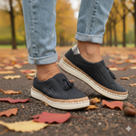 Experimenta la diferencia del auténtico soporte ortopédico con las Zapatillas Slip-On Martina. Diseñadas con una plantilla ortopédica acolchonada que sostiene los arcos de tus pies y reduce la presión sobre las articulaciones, estas zapatillas no solo son cómodas, sino terapéuticas. Los laterales perforados y transpirables evitan el sobrecalentamiento durante un uso prolongado, mientras que el diseño slip-on elimina la tensión de agacharse y atar los zapatos.