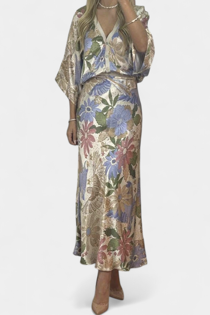 Conjunto Elegante de Blusa y Falda de Cola de Pez con Estampado Floral
