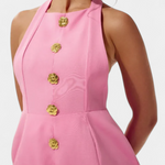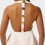 Yvonne Vestido Mini Halter con Escote en V, Espalda Abierta y Encantador Detalle Floral