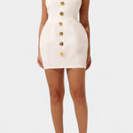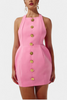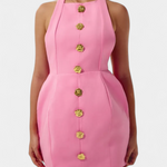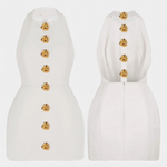 Un diseño que combina sensualidad sutil con acabados sofisticados. El vestido Yvonne destaca por su escote halter elegante y su espalda descubierta en forma de T, adornada con un delicado aplique floral cosido a mano. La silueta mini y el tejido con ligera elasticidad lo convierten en la opción perfecta para lucir segura y deslumbrante.